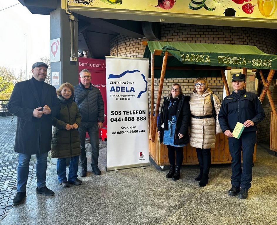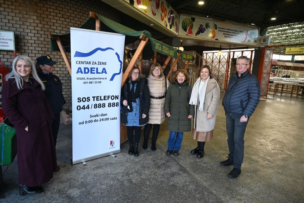 Centar za žene Adela u ponedjeljak 25. studenog 2024. godine javnom je akcijom na Gradskoj tržnici Sisak obilježio Međunarodni dan borbe protiv nasilja nad ženama. Građankama i građanima Siska podijeljeni su letci i promotivni sadržaj s ciljem osvještavanja i senzibilizacije javnosti o nasilju nad ženama te koracima koji se mogu poduzeti za pomoć žrtvama nasilja. Javnu akciju podržao je zamjenik gradonačelnice Grada Siska Marko Krička.